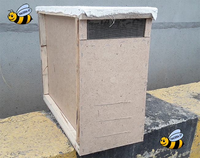 Упаковка пчелопакетов и пчелосемей выполнена из ДВП и оснащена эффективной вентиляцией, за счет сеток установленных на торцевых стенках (смотрите фото). Формирование пчелопакетов и пчелосемей происходит непосредственно перед отправкой.