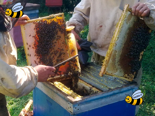 Упаковка пчелосемей и пчелопакетов выполнена из ДВП и оснащена эффективной вентиляцией, за счет сеток установленных на торцевых стенках. Формирование пчелосемей и пчелопакетов происходит непосредственно перед отправкой.
