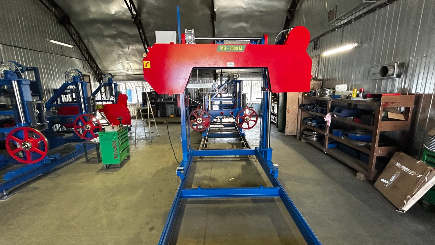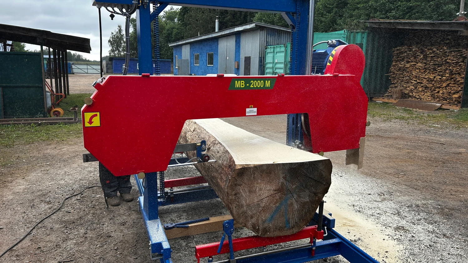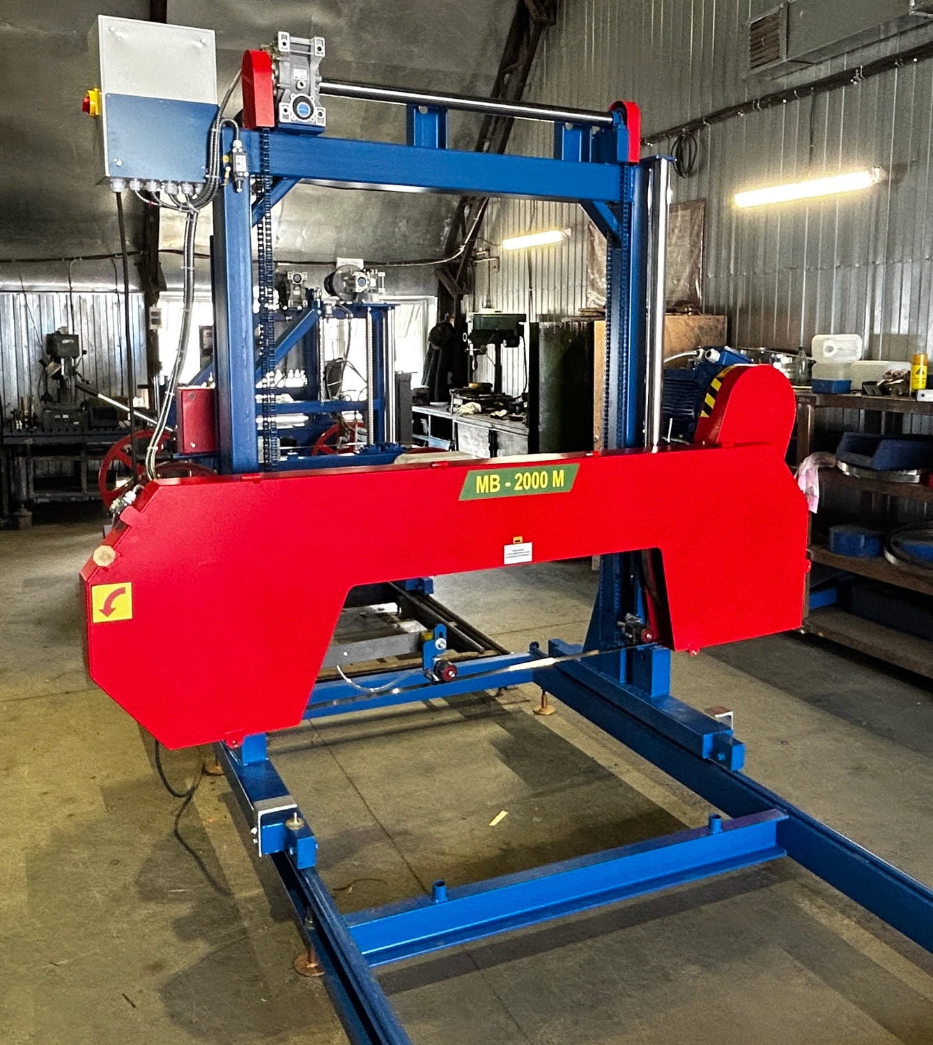 Ленточная пилорама МВ-2000М(1200) – имеет мощную и жесткую конструкцию. Отличается от модели МВ-2000 повышенной производительностью при пилении бревен большого диаметра, большим диаметром распиливаемого бревна, мощностью основного двигателя и общими габаритами. Используется на предприятиях с маленьким и средним оборотом производства для распиловки и раскройки бревен. Это надежная и недорогая пилорама, которая быстро окупается и позволяет осуществлять экономичную обработку брусьев и бревен.