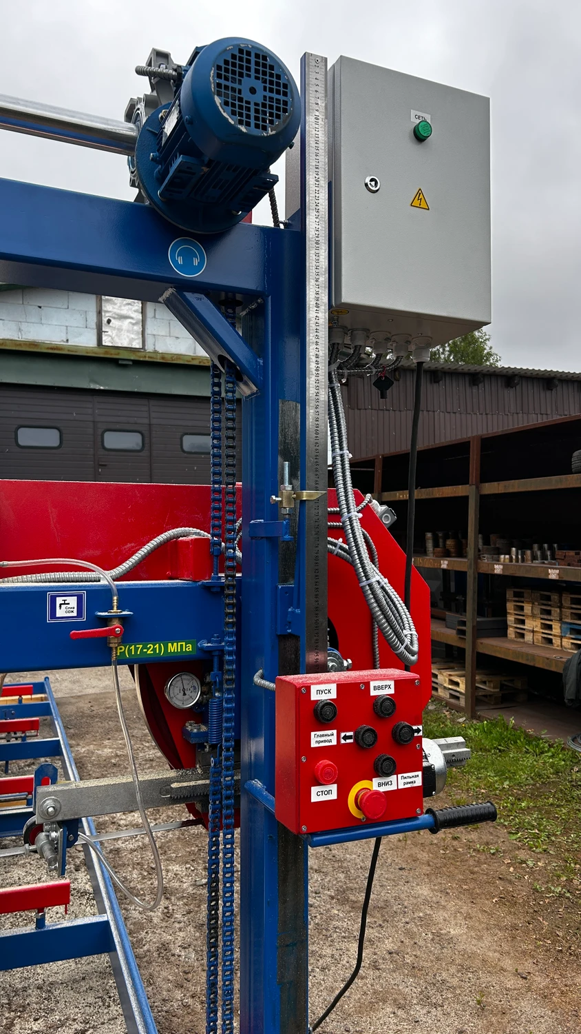 Мотор-редуктор подъёма-опускания пильной рамки:
