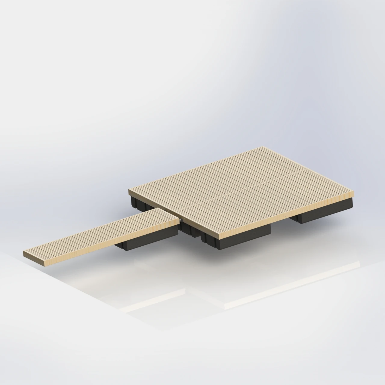 - Переходной трап (3,0 х 0,7 метра): обеспечивает удобный доступ с берега на плавучую поверхность понтона. Трап обладает достаточной прочностью и устойчивостью, гарантируя безопасность передвижения даже в условиях нестабильной береговой линии.