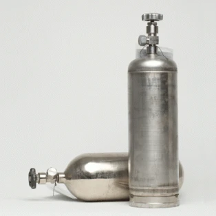 В новых баллонах или в баллонах из собственного высококачественного и лучшего в России обменного парка не старше 10 лет.