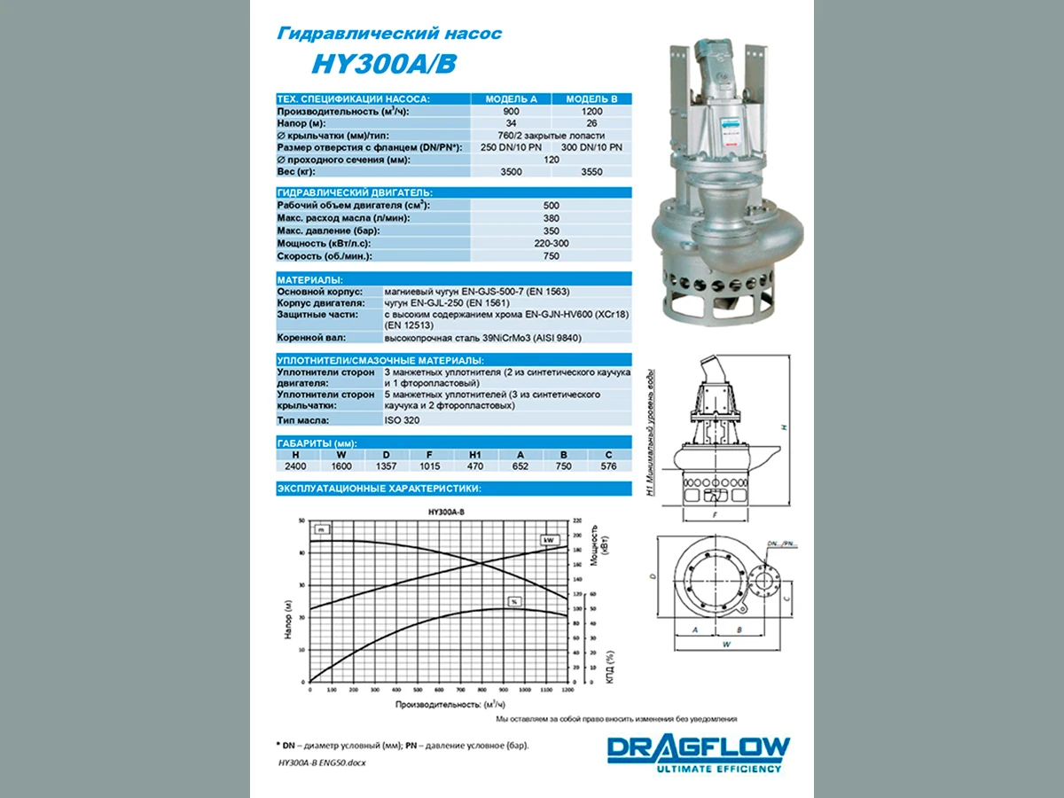 Земснаряд оснащен шламовым грунтовым насосом с гидравлическим приводом DRAGFLOWHY300B с агитатором, с двумя рыхлителями EXHY35, системой гидрорыхления и имеет производительность 1200 м3/час по смеси или до 360 м3/час по твёрдым составляющим (песку, грунту).