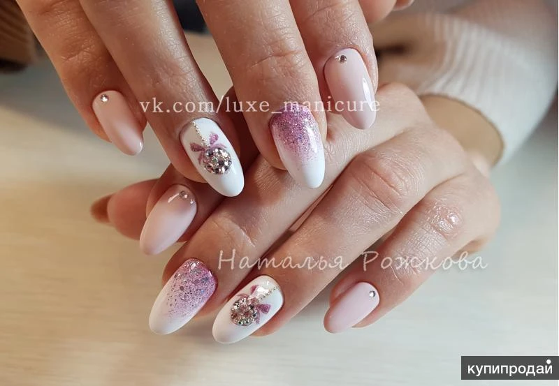 Приглашаю Вас получить услуги красивого и качественного маникюра! Стоимость услуг: -— Маникюр + выравнивание + гель-лак (однотонное покрытие) = 1200 ₽; -— Аппаратный маникюр без дальнейшего покрытия = 600 ₽; -— Снятие своего материала перед маникюром = 0 ₽; -— Снятие своего или чужого покрытия без дальнейших услуг = 150 ₽; -— Укрепление ногтей 300 ₽; -— Маникюр + наращивание + гель-лак = 2000 ₽; -— Донаращивание/ ремонт ногтя - 100 ₽/ноготь. -— Коррекция наращенных ногтей+ гель-лак 1700 ₽; -— Снятие наращенных/укрепленных ногтей+ гель-лак 300 ₽; Дизайн: -— Френч - 50 ₽/ ноготь, 300 ₽/ все ногти; -— Градиент, текстура, бульонки - 50 ₽/ ноготь; -— Втирка, блестки, паутинка, фольга - 50 ₽/ ноготь, 400 ₽/ все ногти; -— Вензеля, рисунки, битое стекло - 100 ₽/ ноготь; -— Стразы, жемчужины - до 10 шт - 50 ₽, 11- 30 шт - 100 ₽, 31- 60 шт - 250 ₽; -— Комбинированные цвета - 100 ₽; -— Кошачий глаз - 300 ₽; -— Матовый топ - 50 ₽/ноготь, 200 ₽/все ногти. Я сертифицированный мастер маникюра и профессиональный художник, так что уникальная ручная роспись, виды дизайна к Вашим услугам! Цвет и дизайн покрытия можно выбрать из имеющейся у меня палитры, или принести с собой желаемый лак. При работе использую только профессиональные стерильные инструменты и качественные материалы с высокой носкостью от известных брендов.