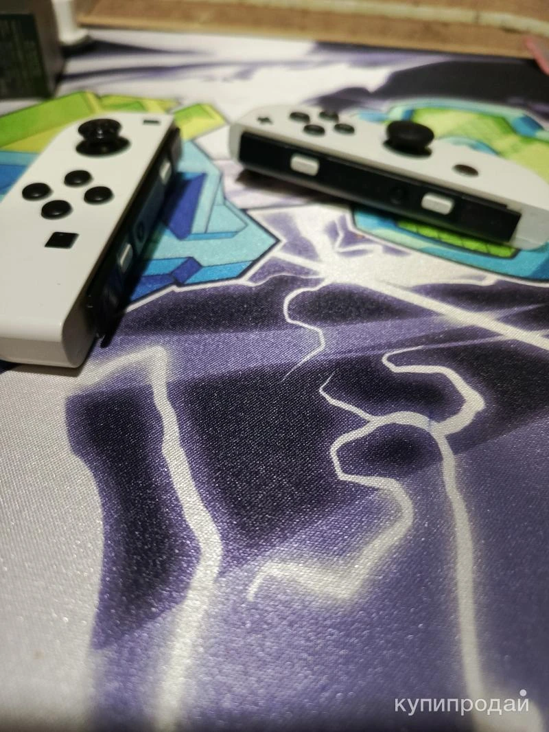 Всем здравствуйте,продаю свою игровую приставку Nintendo switch oled.Состояние средние есть небольшие царапины,на консоли вставлена сд карта на 128 гб с играми. На консоли присутствуют игры: The legend of Zelda breath of the wild The legend of Zelda tears of the kingdom FNAF security breach Cuphead с dls fortnite warfase world of tanks и тд. В комплекте идет:игровая приставка,два контроллера joycon, транспортировочный кейс, док-станция,кабель питания+переходник,hdmi,защитныe силиконовые накладки на joycon,картридж с игрой зельда держатель joycon. Из повреждений: на левом контролере порвалась силиконовая накладка на стике на задней крышке есть царапины. Есть баг с e-shop при входе требует пароль-при покупке скину в лс Есть вход в аккаунт. Только самовывоз!?