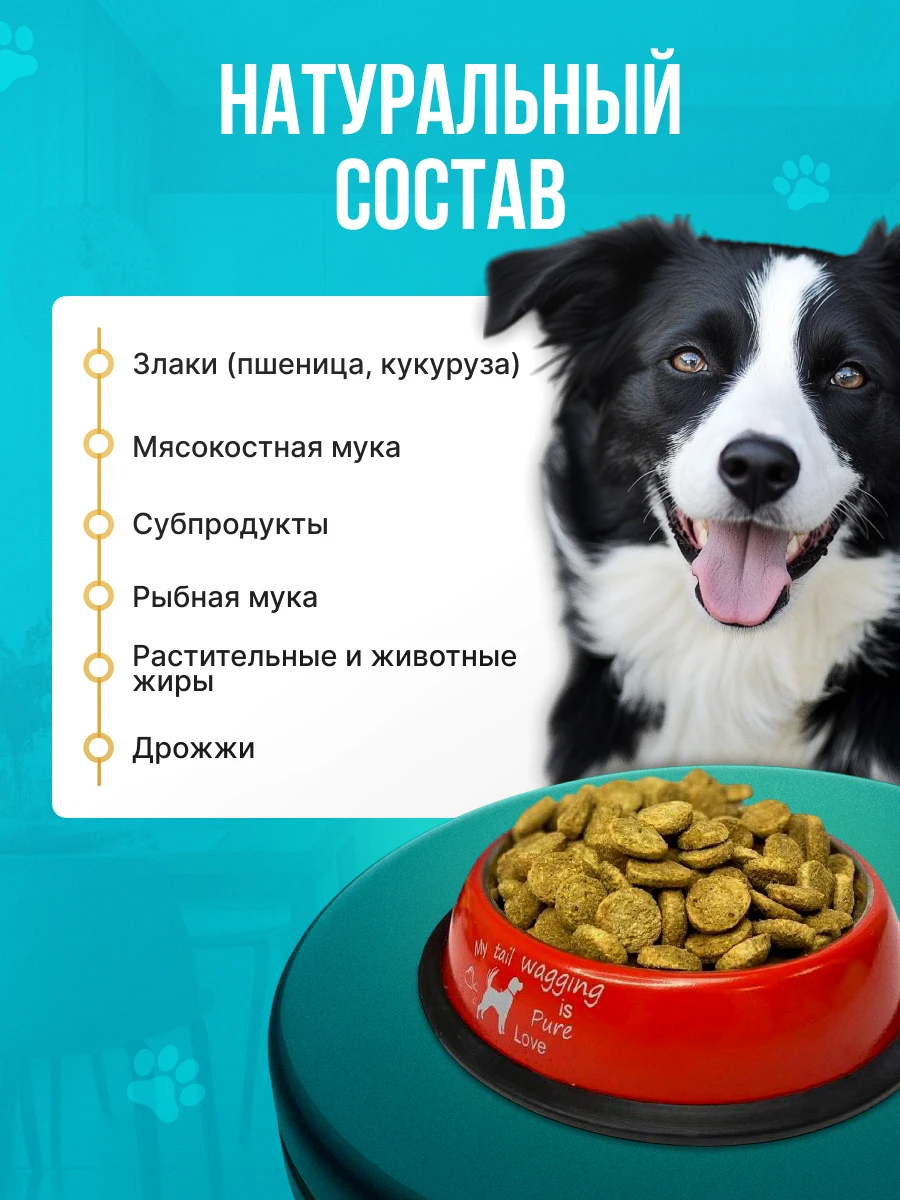 Сбалансированный состав обеспечивает ежедневную норму белков, жиров и витаминов, необходимых для активной жизни собаки. Подходит для взрослых собак всех пород.