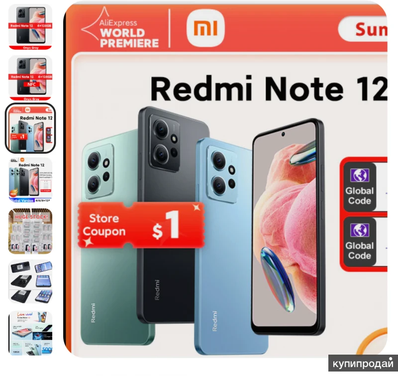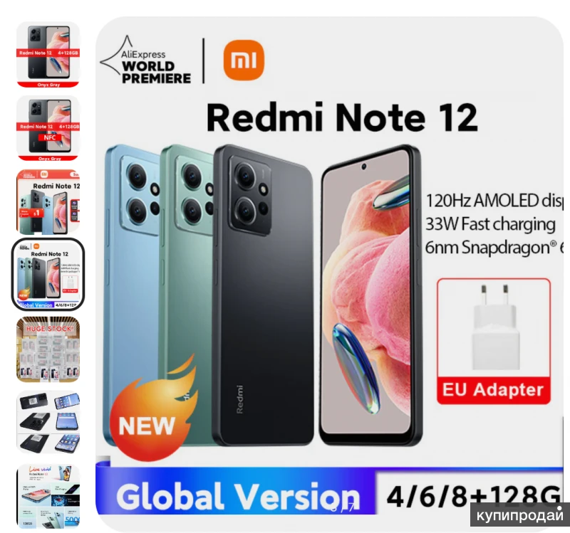 Xiaomi Redmi Note 12 глобальная версия Snapdragon®685 CPU 120Hz AMOLED 33W Быстрая зарядка 50MP камера новинка 2023 года Характеристики Название брендаXIAOMIПроисхождениеКитайСертификацияЕвротест (СЕ)Версия BluetoothYSEДизайнМоноблокЧастота обновления экрана120 ГцЯзыкАнглийскийЯзыкРусскийЯзыкНемецкийЯзыкФранцузскийЯзыкИспанскийЯзыкПольскийЯзыкПортугальскийЯзыкITALIANЯзыкТурецкийЯзыкNorwegianЯзыкKoreanЯзыкЯпонскийЯзыкАрабскийРазмер экрана6,67''Тип матрицыAMOLEDЕмкость батареи (мА*ч)5000Сенсорный экран Да Тип экранаFullview дисплей Тип интерфейса для зарядного устройстваUSB Type-CДругие Особенности Смартфон с быстрой зарядкой Операционная системаAndroidСостояние товара Новый Количество SIM-карт2Разрешение дисплеяNA/AТип батареи Несъёмный Марка процессора Другое Порт для наушников 3,5 ммYESКоличество фронтальных камер1Поддержка быстрой зарядки Адаптивная быстрая зарядка Количество основных камер3Биометрические технологии Сканер отпечатка пальца боковой Биометрические технологии Распознавание лица Разрешение основных камер50MPРазрешение фронтальной камеры13 МП Поддержка беспроводной зарядкиnoNFCnoАккумулятор, мАч Усиленный (4500-5999)Поддерживаемая мощность ЗУ Другое Единица измерения штука/штукиКоличество1Модель XiaomiRedmi Note 12Встроенный GPSYESCPUSnapdragon 685Screen120Hz AMOLED DotDisplayCamera50MP main cameraCharging33W fast chargingBluetoothBluetooth 5.0 Для оплаты перейдите справа : нажмите Перейти на сайт , наберите в браузере наши магазины и выберете что вам понравиться , удачных покупок с праздником! Bisnestily Store #BISNESTILYSTORE ? Sonikshop Store #SONIKSHOPSTORE ? NOBLESTYLE Store #NOBLESTYLESTORE ???
