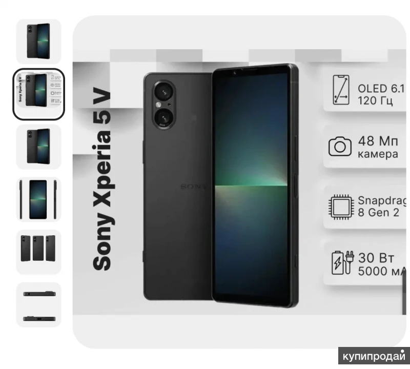 Смартфон Sony Xperia 5 V 8/256 ГБ, черный новинка Характеристики Добавить к сравнению Заводские данные Степень защитыIP68Память и процессорПроцессорSnapdragon 8 Gen2 (8 ядер), 3.2 ГГц Число ядер процессора8Оперативная память8 ГБ Встроенная память256 ГБ Тип карты памятиmicroSDБренд процессораQualcommМодель процессораSnapdragon 8 Gen2Частота процессора, ГГц3.2Бренд графического процессораAdrenoВидеопроцессорAdreno 740СвязьБеспроводные интерфейсыBluetooth, NFC, Wi-FiСтандарты связи2G, 3G, 4G (LTE), 5GФорм-фактор SIMNano-SIMЧисло физических SIM-карт2Модуль связи Bluetooth5,3Модуль связи WiFi802.11 a/b/g/n/ac/axНавигацияA-GPS, GALILEO, GPSФункцииВстроенные датчикиGPS-трекер, Акселерометр Аутентификация Сканер отпечаткаИнтерфейсы3.5 мм, USB Type-CСлот для карты памяти Да Функции зарядки: Беспроводная зарядка, Зарядка внешних устройств, Поддержка быстрой зарядки Общие Емкость аккумулятора, мАч5000Основной материал корпуса Пластик Операционная системаAndroidВерсия AndroidAndroid 13ОсобенностиБезрамочный дисплей Тип корпуса Моноблок Размеры, мм154x68x8.6Вес товара, г128Гарантийный срок12 месяцев Экран Диагональ экрана, дюймы6.1Разрешение экрана2520x1080Технология матрицыOLEDКамераРазрешение основной камеры, Мпикс52Функции камеры Двойная вспышкаСтабилизацияOIS (оптическая стабилизация)Количество основных камер2Разрешение фронтальной (селфи) камеры, Мпикс12Качество видео3840×2160 4KМакс. скорость видеосъемки, кадр/с120ДополнительныеТипСмартфонБрендSonyЦветBlackПоддержка eSimeSIM+SIMСтрана-изготовительКитайВосстановленныйНет NOBLESTYLE Store , наберите в браузере наши магазины и выберете что вам понравиться , удачных покупок с праздником! Bisnestily Store #BISNESTILYSTORE ? Sonikshop Store #SONIKSHOPSTORE ? NOBLESTYLE Store #NOBLESTYLESTORE ???
