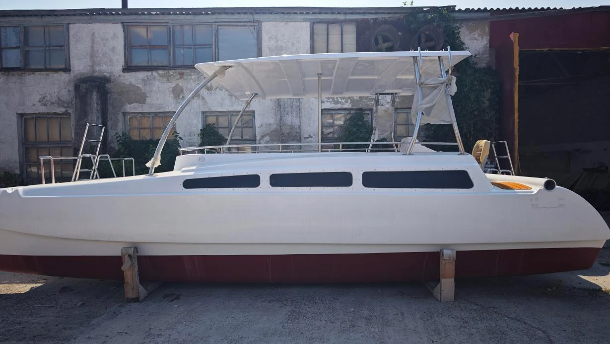 В эту комплектацию входит; баллон левый, баллон правый, соединительные мосты, труба усиления, леера нерж.сталь, поручни спереди, пост управления центральный, бак на 200 литров, топливный индикатор, полукругом сидения с мягкими накладками два люка (вход в боковые баллоны), крыша пластиковая на весь катамаран установелнный на опоры из нержавеющей стали, труба. ходовые огни, панель выключателей, две откач.помпы, впереди люк для якоря, а так же две лесенки из нержавеющей стали на корме и на носу для спуска в воду, тик искуственный на полу, сидение капитана, рулевое управление, руль, покрытие дне составом для предотвращения наростания и многое другое.