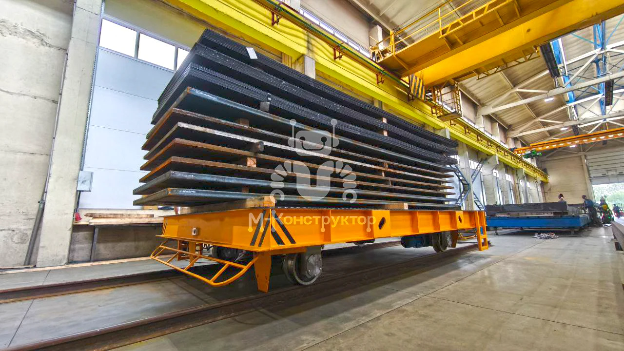 Компания "М-Конструктор" изготовит для вас надёжное звено логистики ЖБИ! Передаточная тележка грузоподъёмностью 40 тонн предназначена для безопасного и оперативного перемещения железобетонных изделий как внутри производственного цеха, так и на открытую площадку склада. Конструкция тележки рассчитана на интенсивную эксплуатацию в условиях тяжелых промышленных нагрузок, обеспечивая стабильную работу в рамках комплексных производственных циклов. Несущая рама из листового и фасонного проката служит прочной основой для всех узлов: ведущих и ведомых колёс, мотор-редукторов, электрооборудования и защитных элементов. Приводная система с асинхронными электродвигателями мощностью 2?5,5 кВт и редукторами гарантирует плавный ход и устойчивое движение при скорости до 40 м/мин. Управление возможно как с помощью радиопульта, так и со стационарного пульта, что повышает удобство и безопасность эксплуатации. Тележка оснащена защитными рамками с концевыми выключателями для аварийной остановки и светозвуковой сигнализацией. Габариты платформы (5545?3300 мм) позволяют транспортировать крупногабаритные изделия, а грузоподъёмность при распределённой нагрузке до 40 тонн делает её универсальным решением для предприятий ЖБИ. Использование передаточной тележки позволяет оптимизировать логистику внутри завода, сократить время на перемещение продукции и повысить общий темп выпуска изделий. Это надёжное решение, способное стать ключевым звеном в технологической цепочке современного производства.