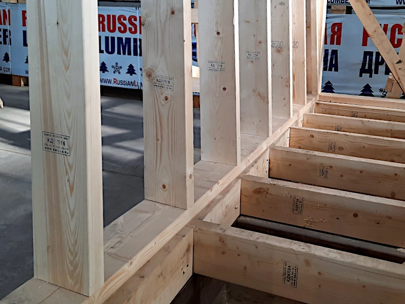 У нас есть возможность производить и поставлять готовые к строительству опорные стойки точно приторцованные -/+2мм длиной от 2,4 м до 3,0 м. Рамный каркас дома 100-120 м2 несет порядка 70-80 наружных опорных стоек сечением 45х145мм (или даже 45х195мм) и порядка 60-80 внутренних опорных стоек сечением 45х95мм. Опорные стойки должны быть точно приторцованы под 90 градусов с двух торцов. В сумме это 40-50 метров погонных (почти половина длины футбольного поля), которые требуется пропилить. В заводских условиях торцовочный проходной конвейерный 2-х сторонний станок сделает свою работу точнее и быстрее, чем торцевать стойки поштучно непосредственно на объекте строительства. Рекомендуем заказывать готовые к применению приторцованные стойки.