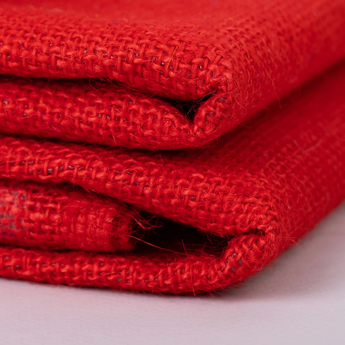 Ламинированная джутовая мешковина высокой плотности– внешне грубый, долговечный, прочный и экологически чистый материал, имеющий широкую сферу применения. Сырье для ее производства – джутовое волокно натурального происхождения. От обычной мешковины полотно отличается тем, что с одной стороны имеет усиление в виде прозрачного слоя ламинационной пленки. Мешковину ламинированную используют для изготовления сумок (ламинированная мешковина не впитывает и не накапливает влагу), упаковок для сувенирной продукции и игрушек, мешочков-саше для ароматизаторов и трав. Применяется в качестве укрывного материала. Из плотной ткани также изготавливают декорации для театральных постановок, кашпо для комнатных цветов. Джутовая ламинированная мешковина обладает повышенной жесткостью и износостойкостью. Полотно плотное, не растяжимое, не аллергенное, не накапливает статическое напряжение. Рекомендуется ручная стирка при температуре 30 °С, сушить на горизонтальной поверхности в расправленном виде. Состав мешковины: 100% джут.