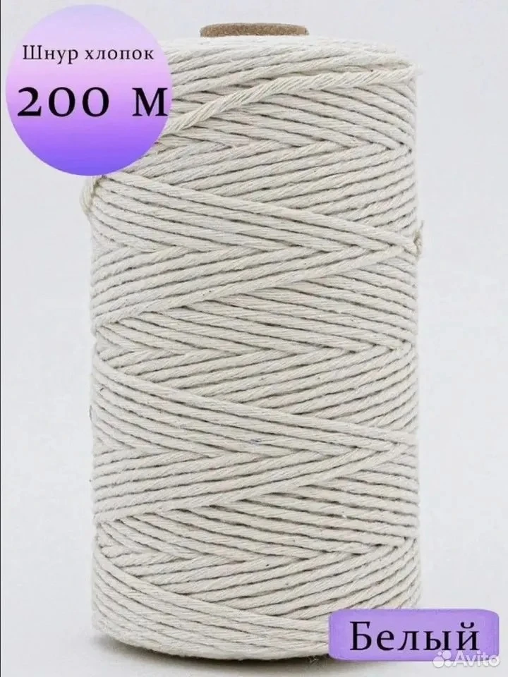 | Макраме шнур хлопковый для вязания 2мм 200м |